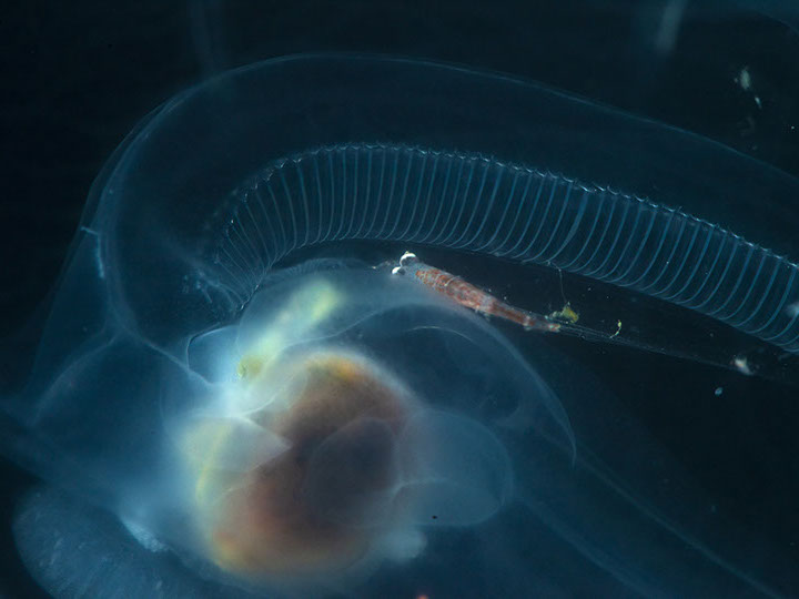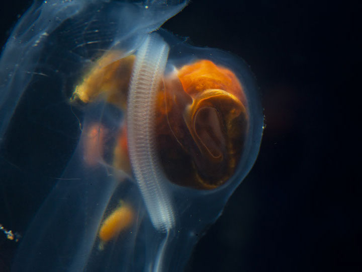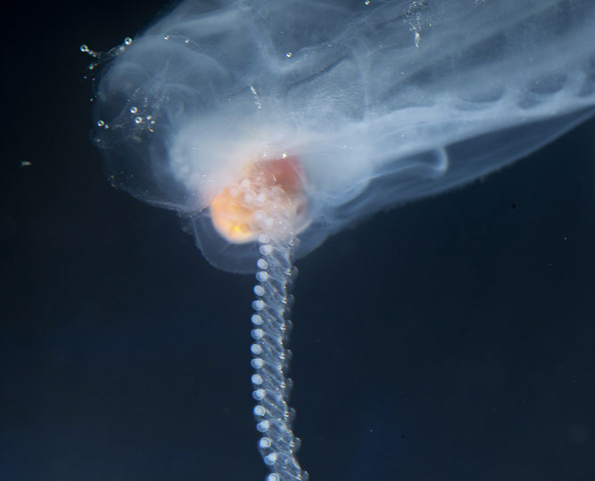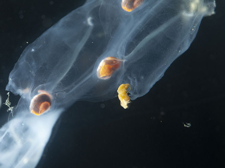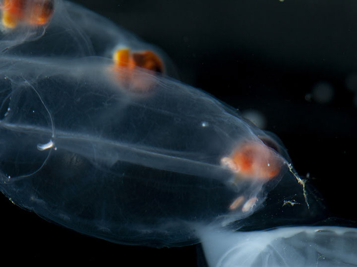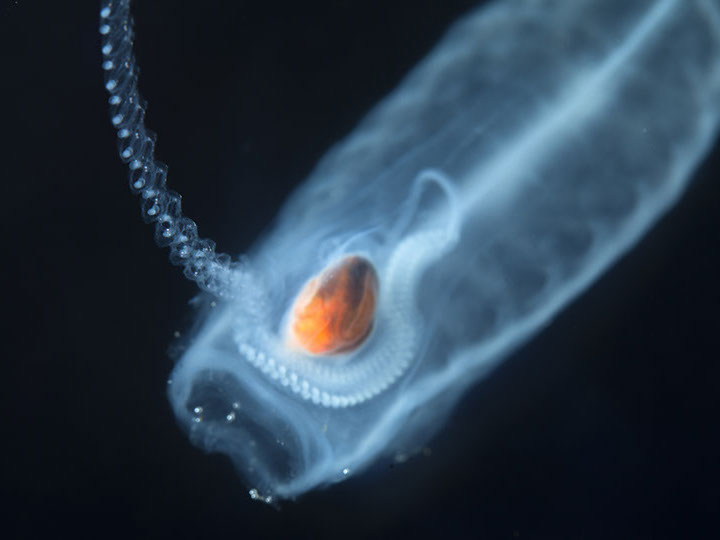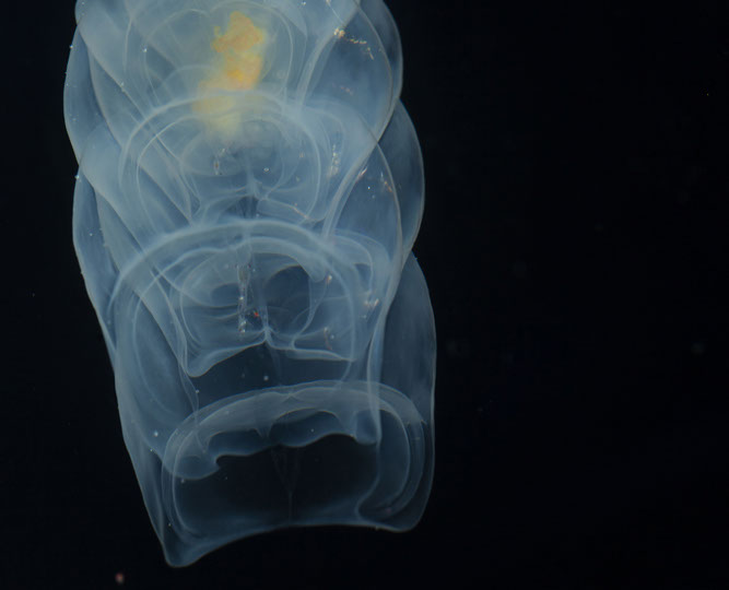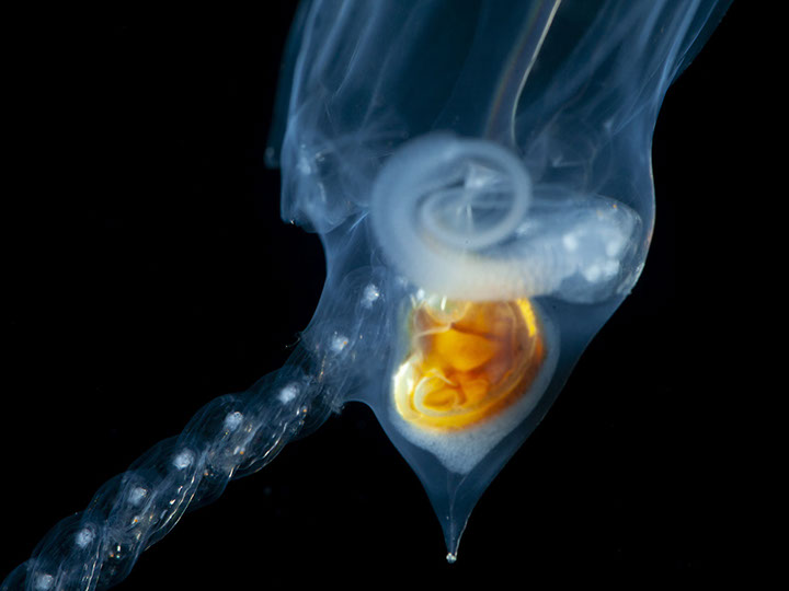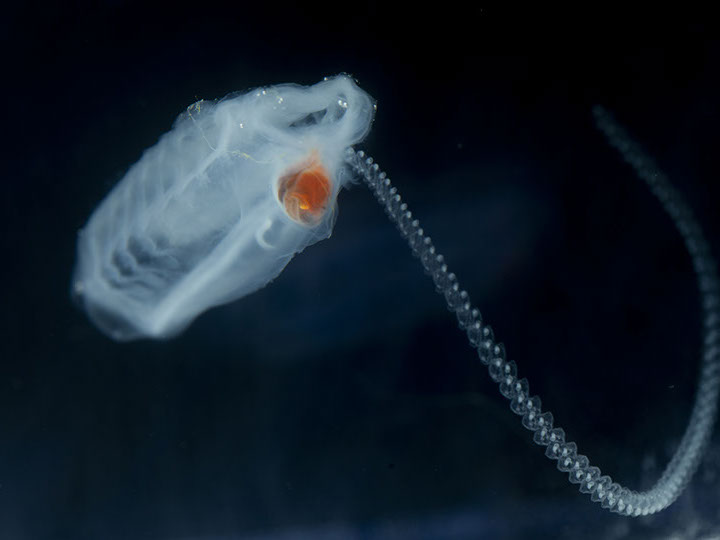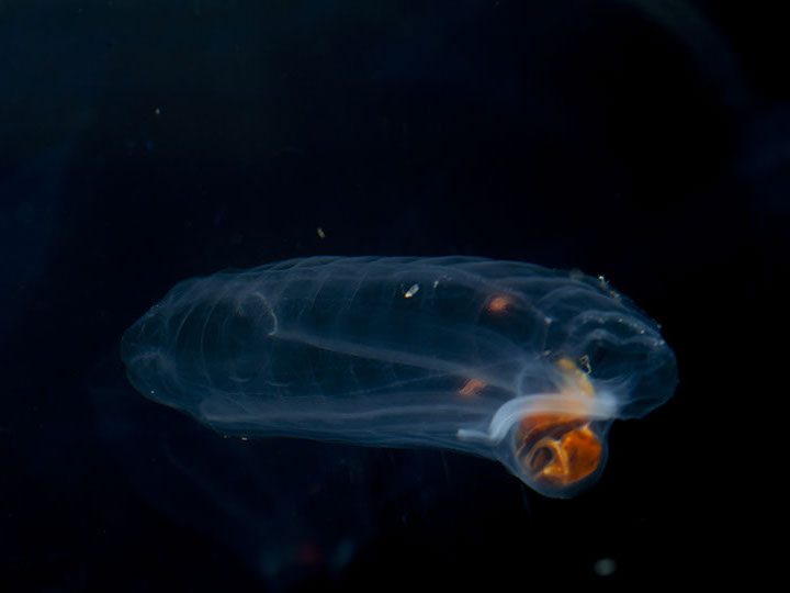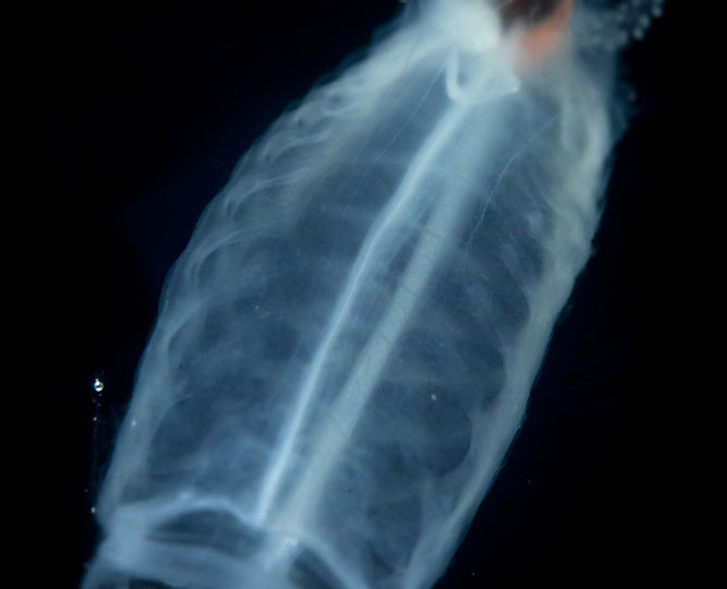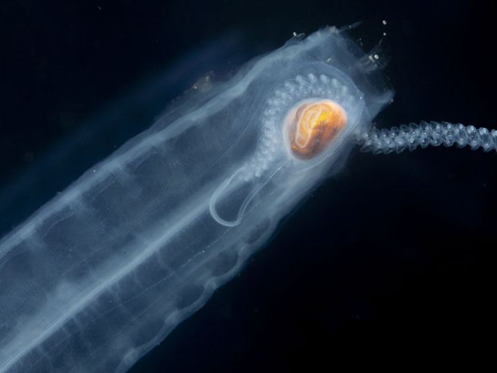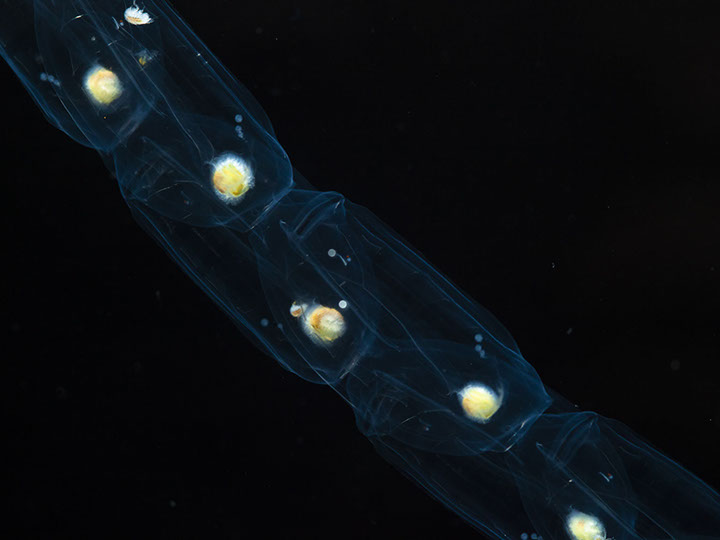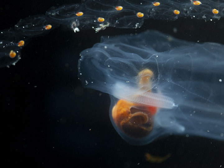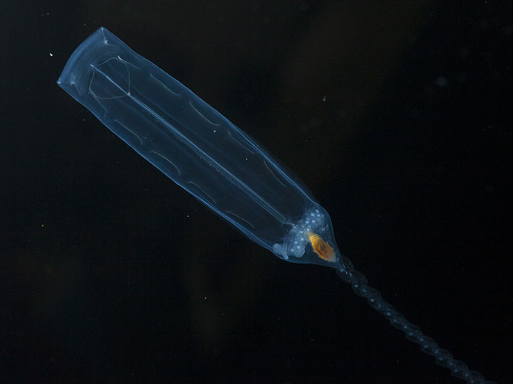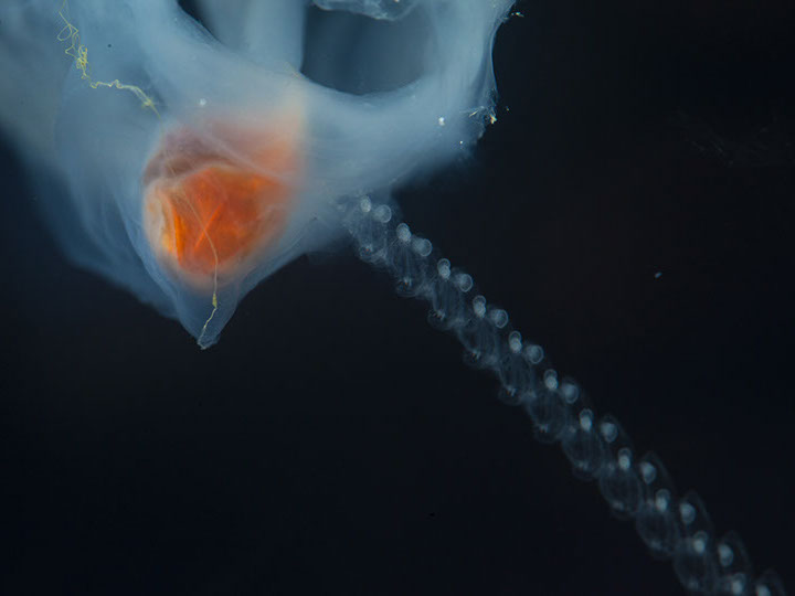 Solitary Salpa thompsoni releasing a chain of blastozooids
