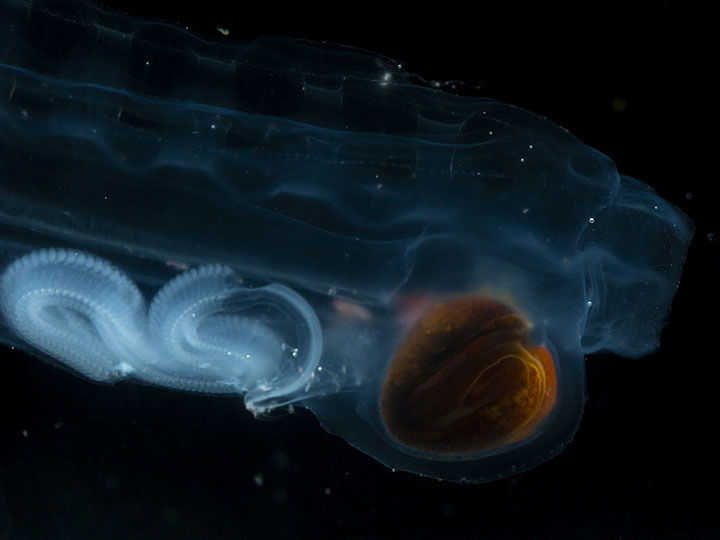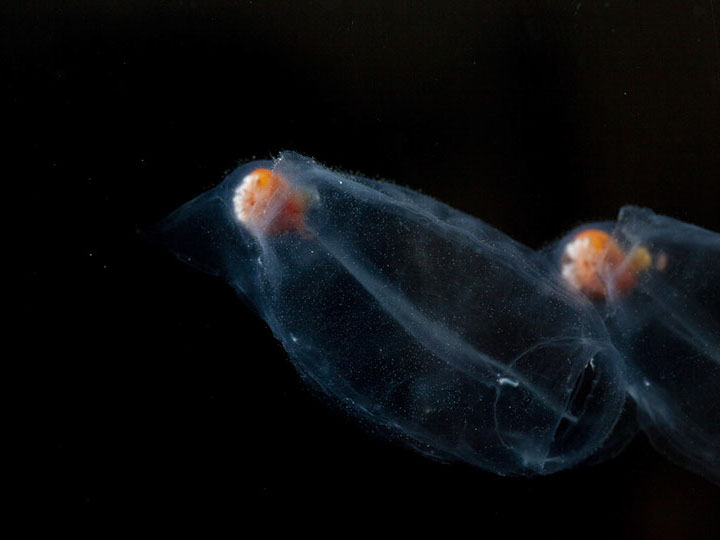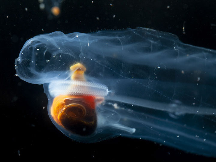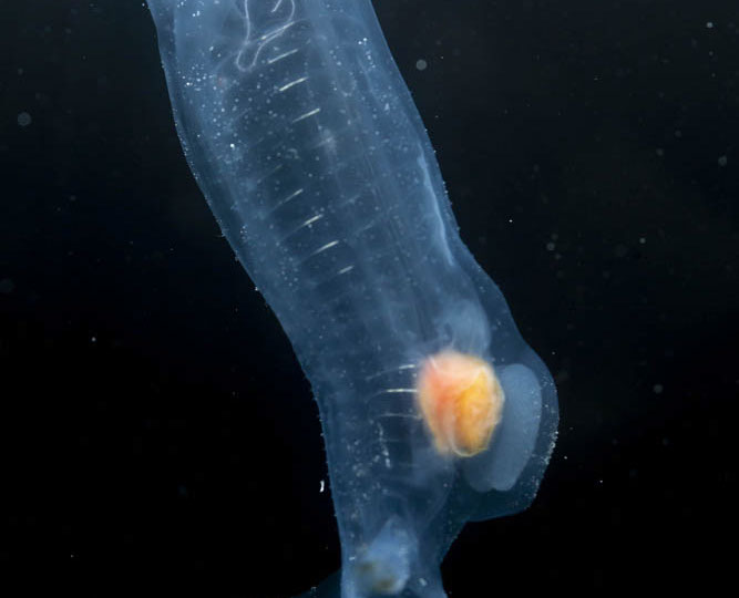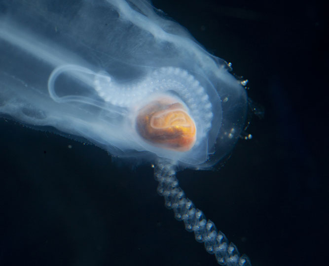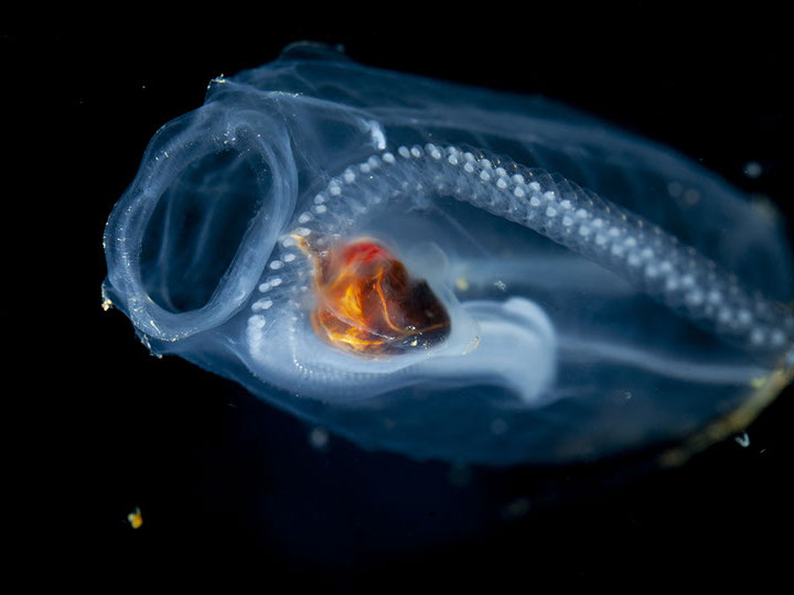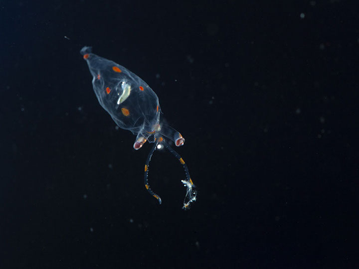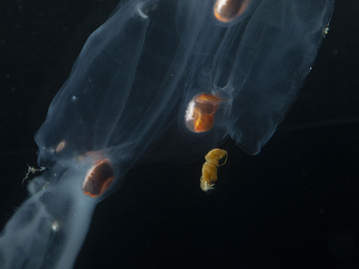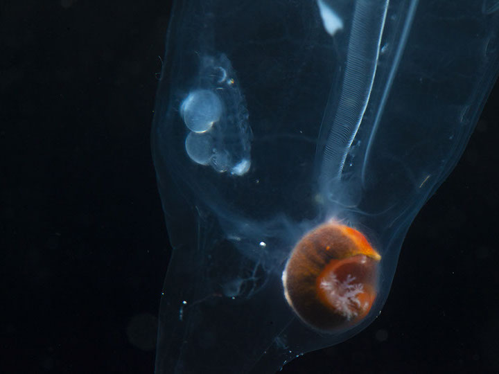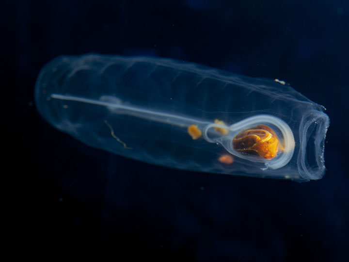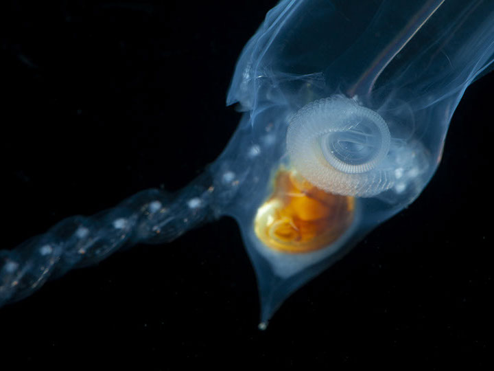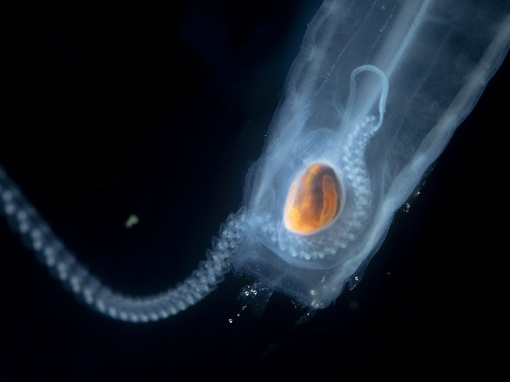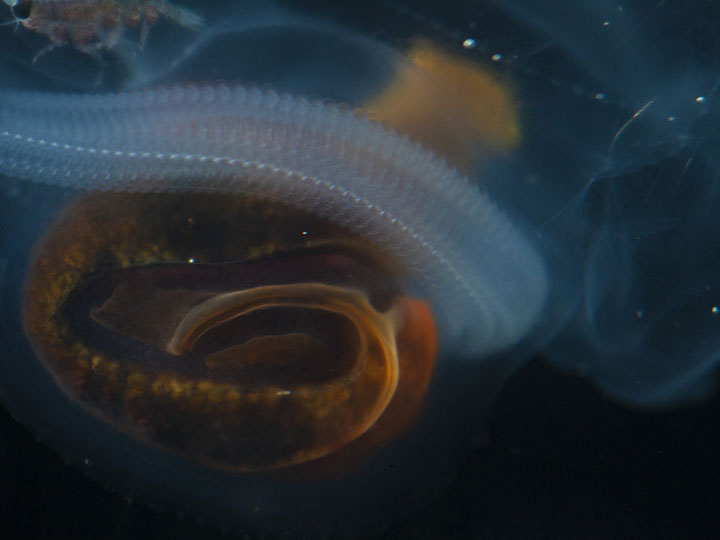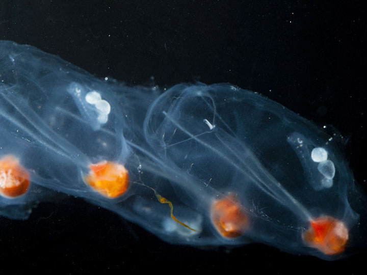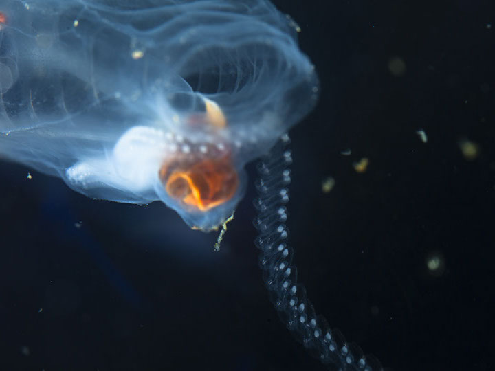 Solitary Salpa thompsoni releasing a chain of blastozooids