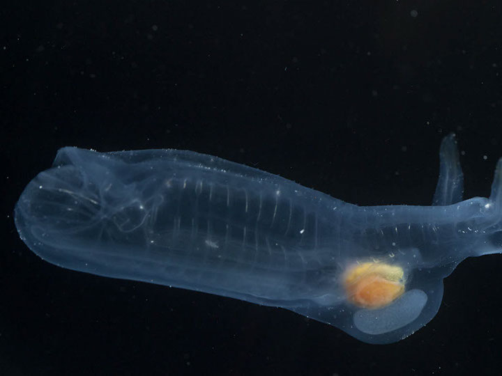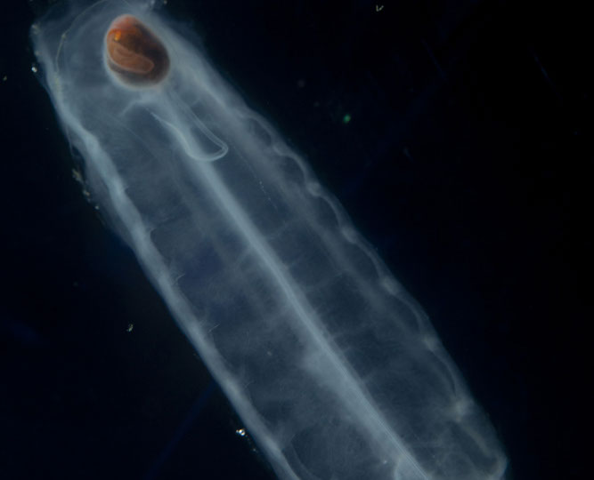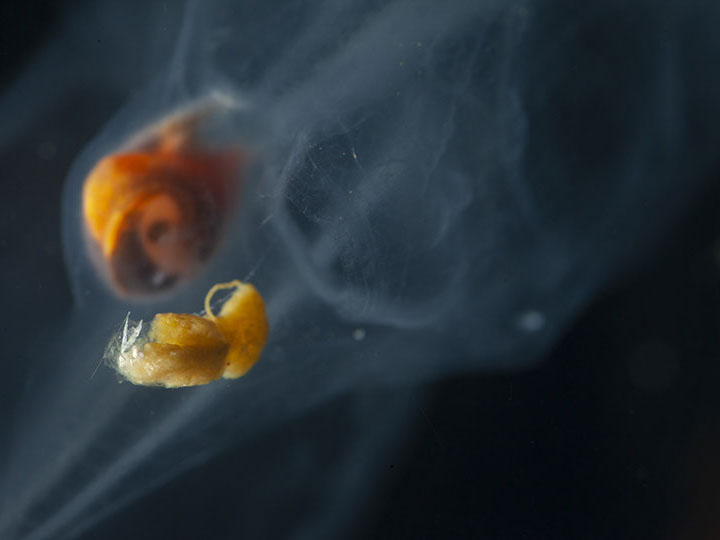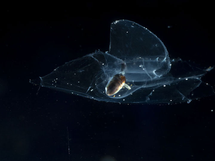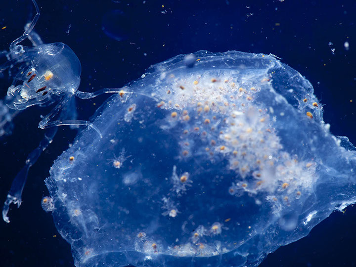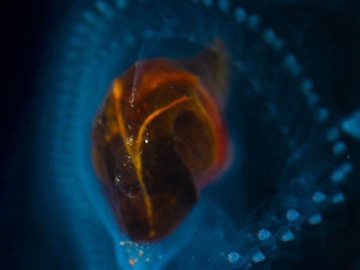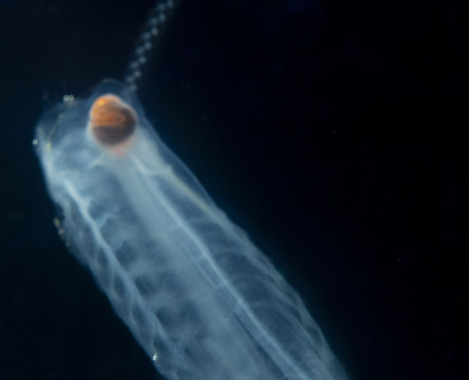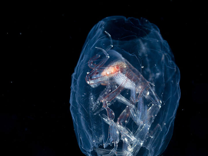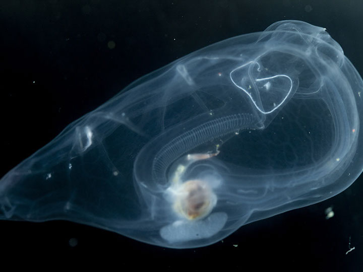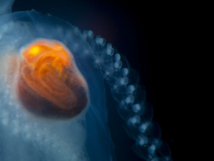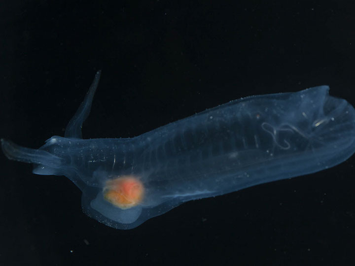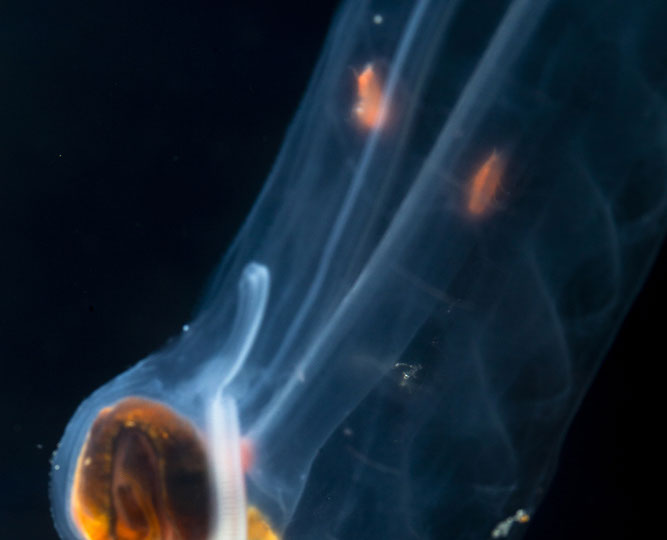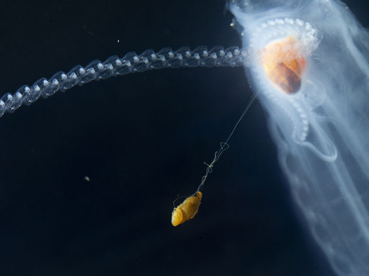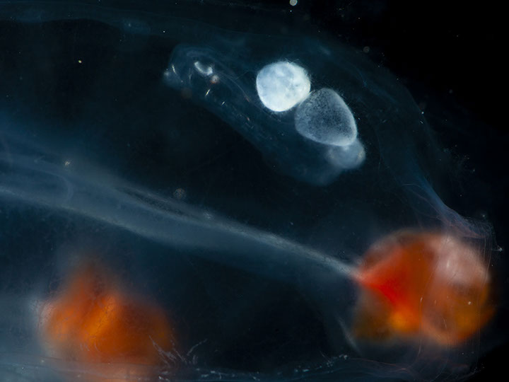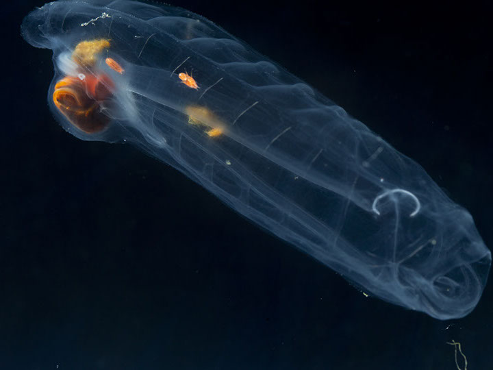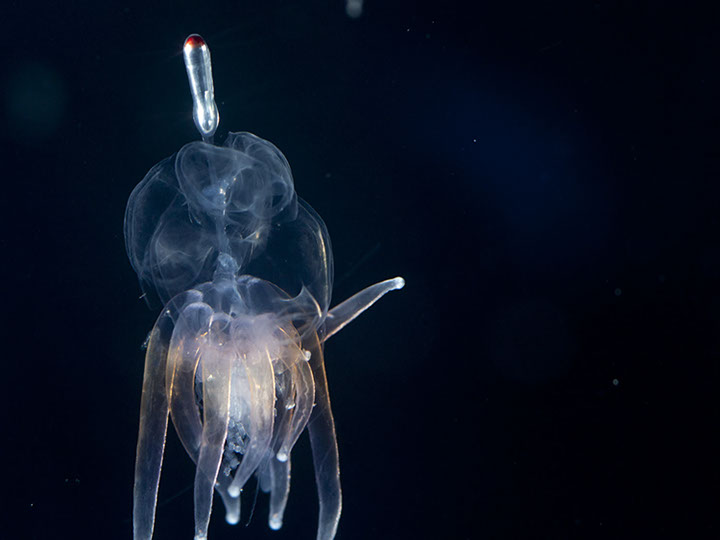 Solitary Salpa thompsoni releasing a chain of blastozooids