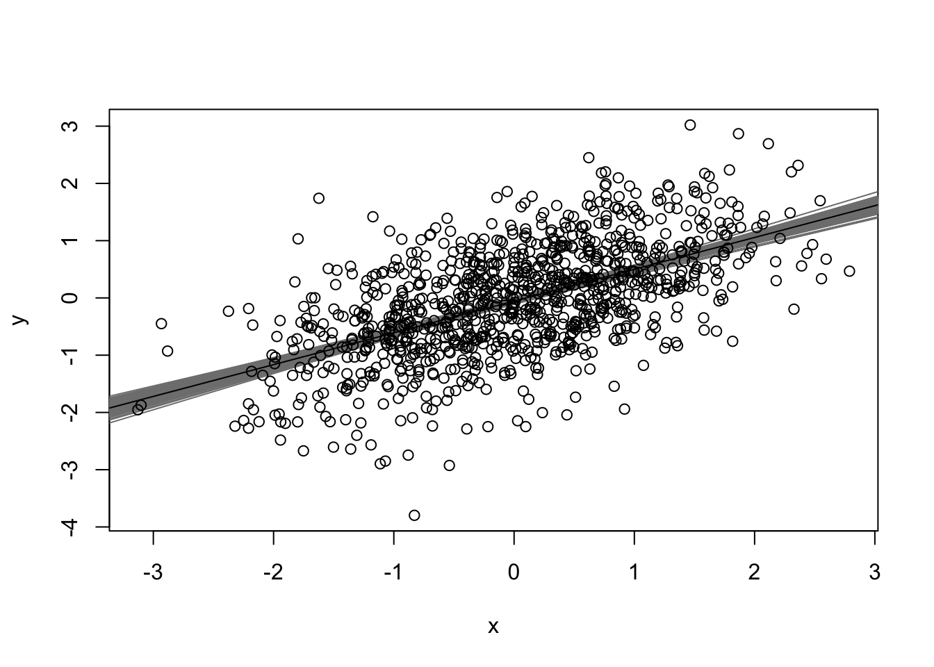abline(a=coef.sim[i,1],b=coef.sim[i,2],col="gray50")